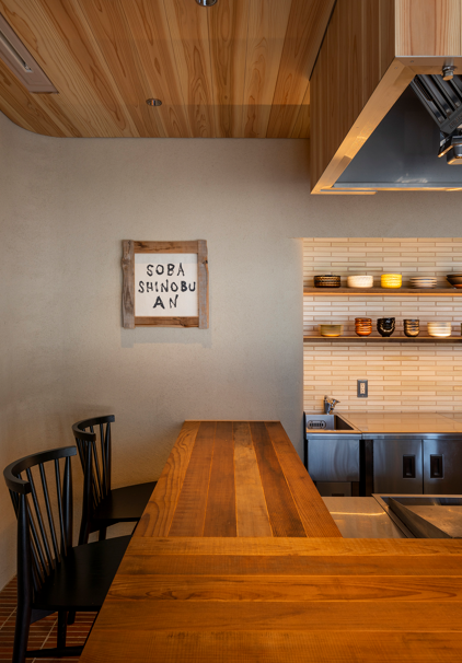 しのぶ庵 本店は、地下鉄駒川中野駅からほど近くにある、和モ ダンな雰囲気漂う蕎麦専門店です。国産そば粉を使用した香り 高いそばと、揚げたての天ぷらが自慢で、ランチタイムにはそ ばを中心とした多彩なメニューをご提供しています。季節限定 の「冷かけすだちそば」は毎年ご好評をいただいており、食後 には新発売の昔懐かしい「抹茶もなか」もおすすめです。夜に は日本酒に合う一品料理も豊富に揃い、落ち着いた空間で上質 なそばを手頃にお楽しみいただけます。お一人様でも気軽に立 ち寄れる、地域に愛される一軒です。