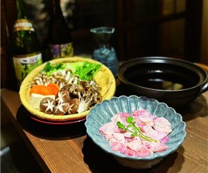 落ち着いた店内にはカウンター席や座敷席があり、近江牛や河内鴨のすき焼きをはじめ、