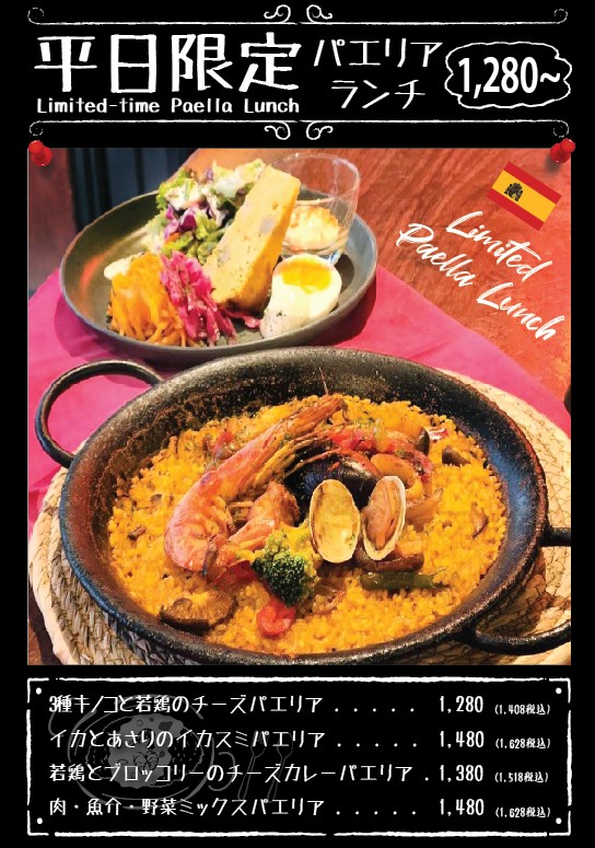 スペインバル massa 京橋店は、JR京橋駅から徒歩すぐの本格スペイン料理店です。 カウンターやテーブル、スタンド席を備えた全44席の開放的な店内は、ネオンアートが彩るおしゃれな雰囲気。 平日では、そういった雰囲気でお得なパエリアランチを味わえます! 4種のパエリアの中から、スペインの味でしばらく平日の悩みから休憩しませんか?