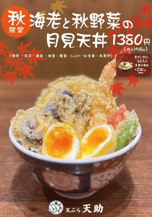 天ぷら天助 秋限定の月見天丼、サクサクで登場!