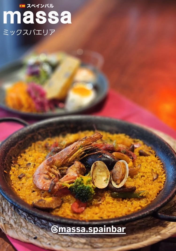 スペインバル massa 心斎橋パルコ店 心斎橋駅直結のPARCO地下2階「ネオン食堂街」に位置するこ のスペイン料理店は、ネオンサインが印象的なスタイリッシュ な空間で、カジュアルながら本格的なスペイン料理を気軽に楽 しめるおしゃれな一軒です。ランチからディナーまで営業して おり、昼飲みや女子会にもぴったりで、名物のパエリアは渡り 蟹のトマト仕立てやイカスミなどを含む20種類以上を揃え、タ パスも生ハムやアヒージョ、スペイン風オムレツなどバラエテ ィ豊かにラインナップされています。料理との相性が抜群のス ペインワインや自家製サングリアも豊富に取り揃えており、お 得なコースやクーポンも利用できるため、記念日やグループで の食事にもおすすめです。