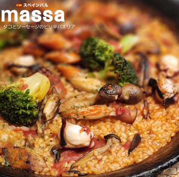 スペインバル massa 京橋店は、京橋店は、JR・大阪メトロ京橋 駅すぐの「Kぶらっと」高架下1階にある本格スペイン料理の バル。アクセス良く、気軽に訪れやすいお店です。店内はおし ゃれでカジュアル、開放感があり、インスタ映えする空間が広 がっています、Wi-Fiや英語メニューも用意されており、多様な シーンに対応可能です。口コミでは「渡り蟹と魚介のトマトパ エリア」「スパニッシュオムレツ」「アヒージョ」「自家製バスクチーズ」が特に好評。見た目にも味にもこだわりを感じられる 一品との声が多数です。女子会、友達会、ご友人、親戚の会 など、もちろんお一人様も大歓迎です。皆様のご来店お待ちし ております。